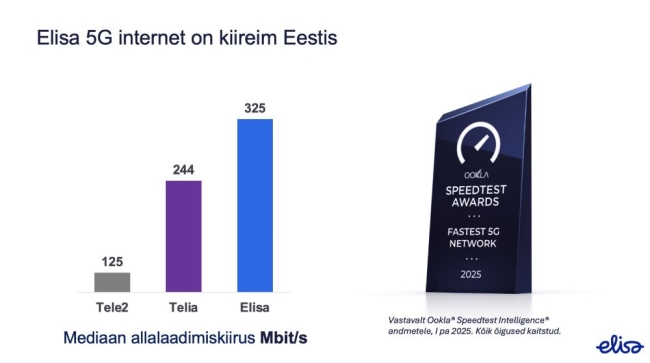 Rahvusvahelise telekomivõrkude analüüsi liider Ookla kuulutas juulis esimese poolaasta andmete põhjal Elisa  Eesti kiireima 5G võrguga operaatoriks. Raporti järgi oli Elisa Speed Score™ tulemus 63,10, mis edestab Telia (59,91) ja Tele2 (47,80) tulemusi. Elisa mediaan allalaadimiskiirus ulatus 325 Mbit/s-ni, võrreldes Telia 244 Mbit/s ja Tele2 125 Mbit/s näitajatega.