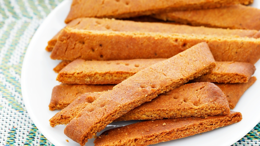 Jaota tainas kolmeks. Rulli või mätsi tainaosad ahjuplaadile asetatud küpsetuspaberil piklikeks õhukesteks plaatideks ja torka kahvliga kergelt läbi.